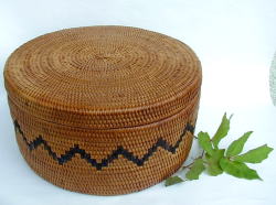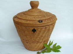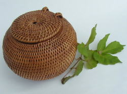 職人さんたちが1点ずつ編み上げ、椰子殻を焼いた煙で燻してあります。とても丈夫なカゴです。