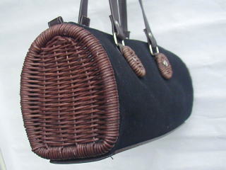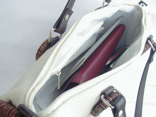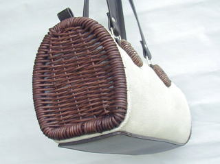 ファスナー開閉 内側にファスナーポケットあり。 左画像では、札入れタイプのお財布、携帯電話、 文庫本サイズの手帳が入っています。 10cm×12.5cm×32cm(ボディ部、外寸) コットン、ラタン(かご部分) ビニールレザー(持ち手、ボディ部外底) 2310円 完売しました |