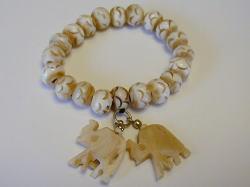 ナチュラルカラーのボーンビーズ。 2匹のゾウさんのチャームがポイント。 内周13.5cm ゴム仕様 2 577円 |