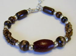 | ワイン色のウッドビーズをメインに、 手の込んだデザインになっています。 長さ16cm(21cmまでOK) カニカン留め 7 630円 |