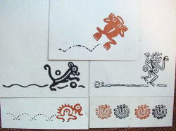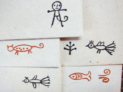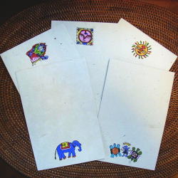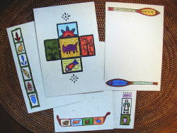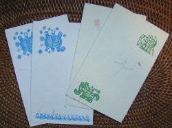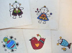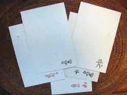 | 素朴な手漉き紙にかわいい(またはナゾめいた)柄が5種類ずつ。 e-mailの時代だからこそ、 手書きのメッセージは心に届きます! |
