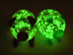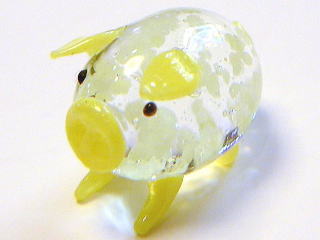 | 元祖「幸せをはこぶハコブタ」です。 暗闇で光るほかに何か特別の「お仕事」が出来る、ってわけじゃありません。 でも。 そのぶん、しっかり4つの足で立って、小さな背中であなたの幸せを支えます♪ |