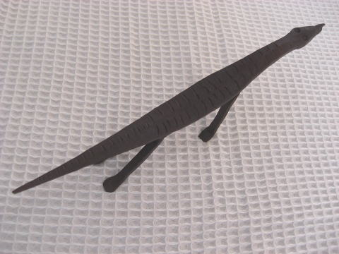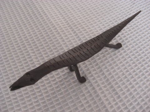| この…。全然かわいくない顔、どうですか!?イイでしょ!? ボディもぺったんこです。車に轢かれたちゃったみたいなカンジ!? しかも、素材は鉄。アイアンです。重いです。 マニアックなこのトカゲ、貴方のお傍に是非! 不思議と癒されます。 23cm×9cm×3cm 1,260円 完売しました |