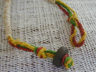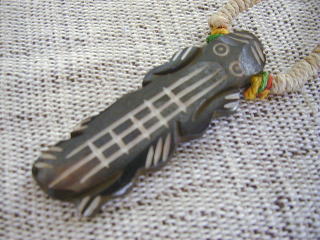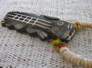| ラスタカラーのヘンプコードの先に、ボーン製の素朴なワニ。 すっごい歯を見せてますが、獰猛性は薄いカンジです…。 シンプルなTシャツにも、コテコテにエスニックなコーディネートにも! |