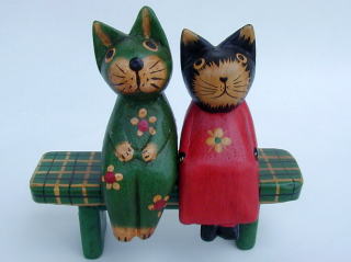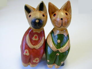 木の素材感を生かしたタイプです。 木目ねこ青服、木目ねこ赤服 |