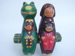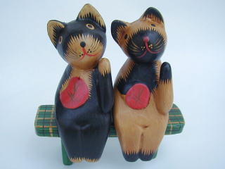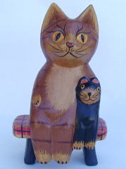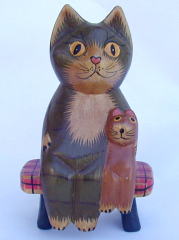 | 親子ねこ 500円 身長11.5cm きりっ、とカメラ目線で子ねこの肩を抱いてます。記念撮影風。 完売しました |