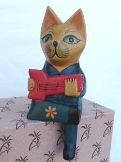 ギター弾きねこ 800円 身長19.5cm 小粋な渡り鳥。もとい、 クールなストリートミュージシャンです。 でもアンタ… 手に持ってるだけで、ちゃんと弾いてませんから! 残念!! |