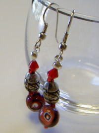 手作りの凝ったビーズが美しい、程よいボリューム感のあるピアスです。