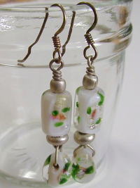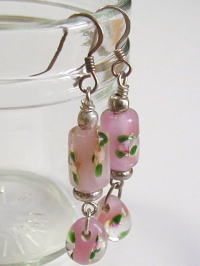 | 透き通ったグラスビーズに優しい色を流して、小花とシルバーチップを浮かべました。 縁日の水ふうせんみたいな可愛らしさです。 ビーズピアス7 ビーズ部長さ 3.5cm 各840円→500円 |