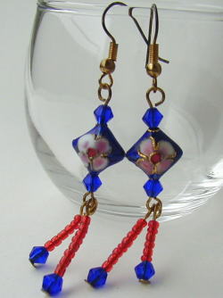 5 472円→250円 群青色に赤のフリンジが可愛いのです。 ビーズ部の長さ 4.5cm |