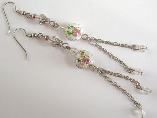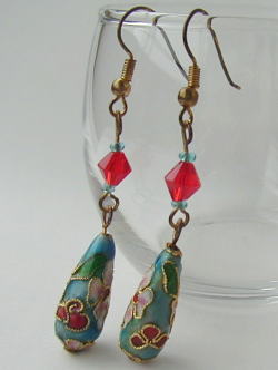 3 472円→250円 清楚な水色の雫。赤とピンクの花が可憐。 ビーズ部の長さ 3.5cm |
