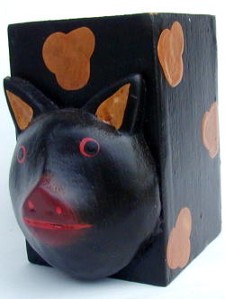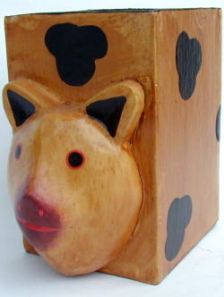 | 仕事や勉強に疲れたとき、デスクの上のペン立てとちょっとだけ見つめ合ってみて下さい。 なごみます。(一緒に微笑むと、なお良し?) 10cm×6.5cm×9.5cm 700円 |