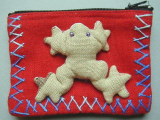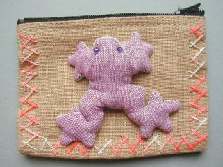 かえるはぬいぐるみ風、ぞうはパッチワーク風です。中に綿が入っており、ふっくら立体的。 どちらもポーチに接着してあります(縫い付けてはありません)。 周辺部の刺繍は、後ろ側も同じです。 ポーチの内側は別布で裏打ちしてあります。 たて7.5cm×よこ10.5cm(手作り品のため、バラツキがあります) 300円 ご注文時にポーチの色柄の番号をご指定ください。 |