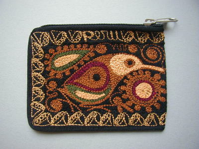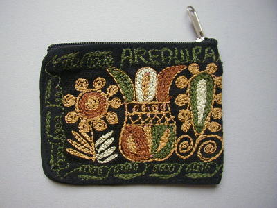 | アンデスの古代文明をモチーフにした刺繍がとても素敵です。 店主、一目惚れ!激惚れです! 機械刺繍ですが、びっしりとほぼ全面に刺繍が施されています。 しかも、表と裏で別の柄です。 名刺とほぼ同じ大きさ(ギリギリ入りません)の小さなパースなのですが、 お値段以上のリッチ感があります。 全5種類 各945円 |