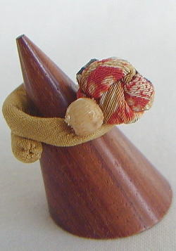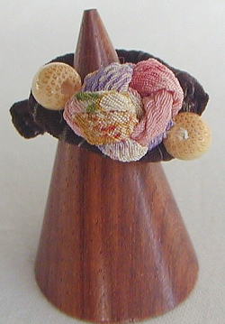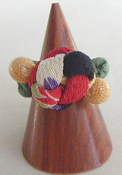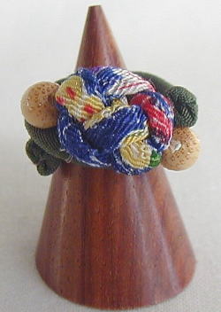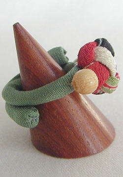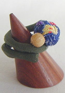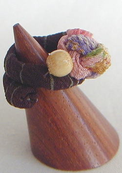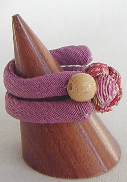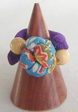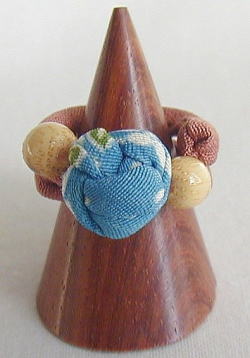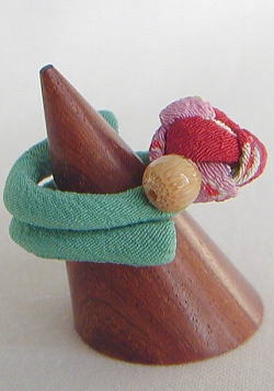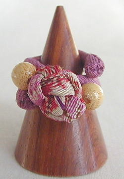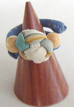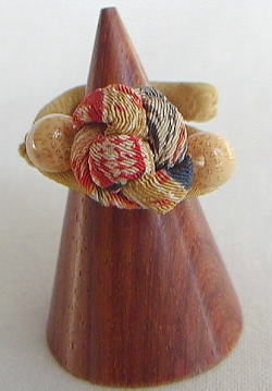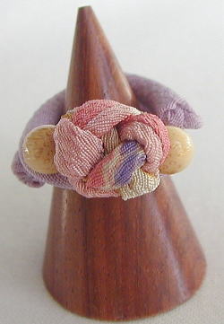 | フリーサイズのワイヤーリングをちりめん素材でくるんで、和の指輪ができました。 結び玉と竹ビーズで飾り、一輪の花のよう。 和服はもちろん、ざっくりしたシンプルニットなどにも良く合います。 結び玉直径 約1.5cm フリーサイズ 各400円→300円 |
