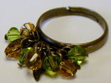 木の葉とドロップのビーズが手元で揺れる、とっても可愛いリングです。