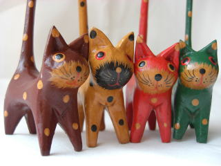 | バリ島発!おなじみ木彫りアニマルは、チェレンガンの得意技です。 「バリ猫」って呼び名でおなじみ?の、ちょこんと座ったおすわりねこやしっぽねこ、 楽しく使えるタオル掛けやフック、存在感たっぷりのちょっと大きめなアニマルまで、 自慢の品揃えです! 画像をクリックすると、それぞれのページに入ります。 |
