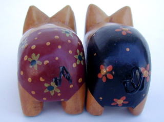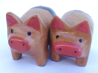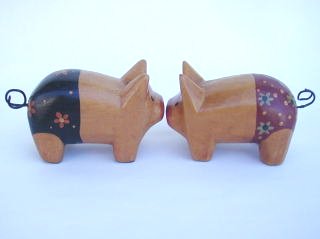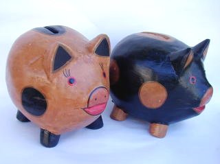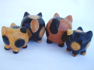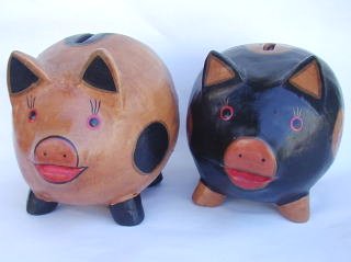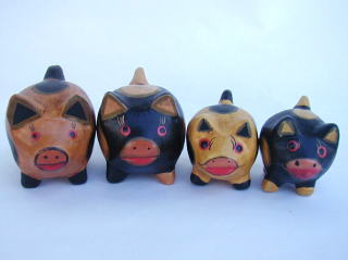 ぶたの貯金箱 12cm×11cm×14cm 800円 ちゃんと蓋が開くのです。 でも、500円玉には ちょっと微妙な穴の大きさです…。 |