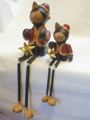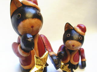 | 足のながーーい、ねこサンタ。右手に掲げた大きな星がチャーミング♪ ひざが曲がるので、腰掛けさせて飾るのがオススメです。 腕の角度も変えられますよ。 |